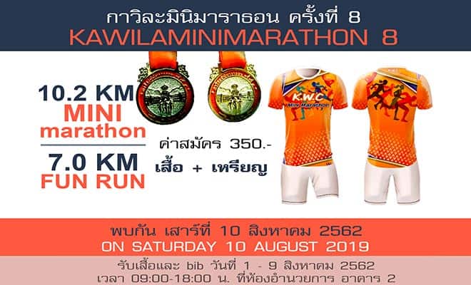 กาวิละมินิมาราธอน ครั้งที่ 8 วันเสาร์ 10 สิงหาคม 2562 ปล่อยตัวเวลา 06:00 น. ณ โรงเรียนกาวิละวิทยาลัย วิ่งเพื่อการศึกษา วิ่งเพื่อสุขภาพ งานวิ่งฝั่งอ้อมเมืองเชียงใหม่ กาวิละมินิ
