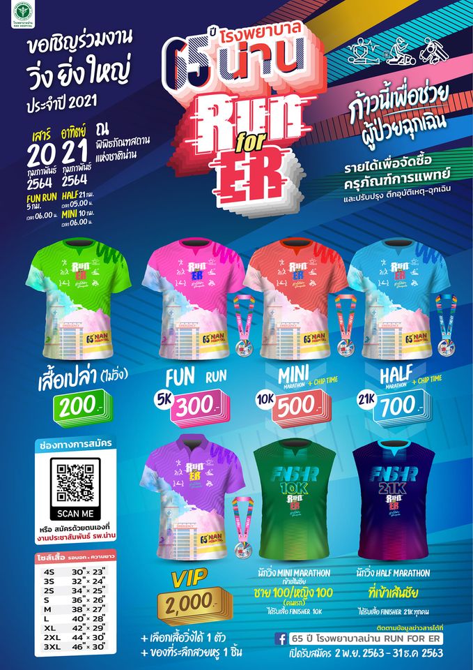 งานวิ่ง 65 ปี โรงพยาบาลน่าน Run For ER วันที่ 20-21 กุมภาพันธ์ 2564 ณ พิพิธภัณฑสถานแห่งชาติน่าน อ.เมืองน่าน จ.น่าน