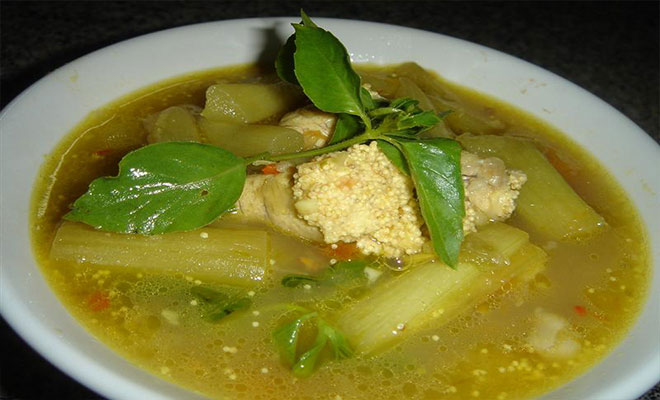 ภาคเหนือ แกงตูน ภาคใต้ แกงส้มปลากดต้นอ้อดิบ ภาคกลาง แกงเหลืองปลากะพงกับต้นคูน