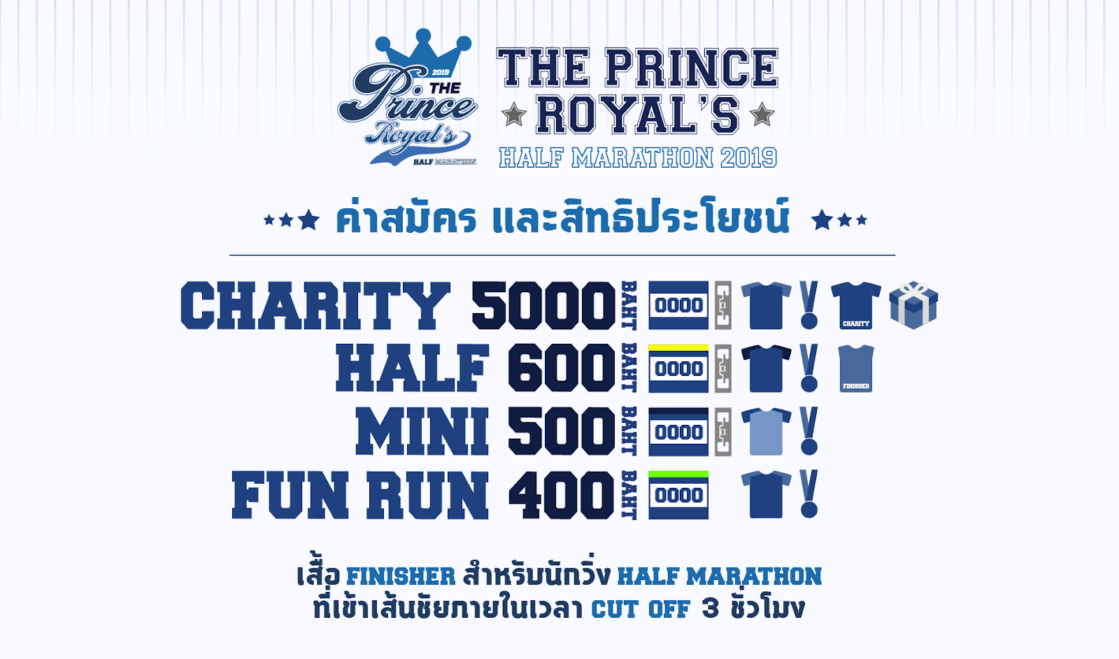 งานวิ่ง The Prince Royal’s Half Marathon 2019 วันอาทิตย์ที่ 13 มกราคม 2562 ณ ศูนย์ประชุมและแสดงสินค้านานาชาติเฉลิมพระเกียรติ 7 รอบ พระชนมพรรษา
